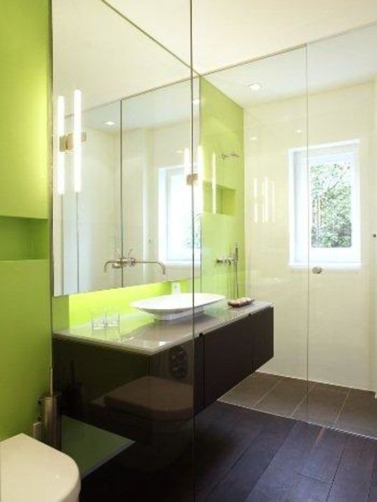 Badezimmer grün. Grün und schwarz weiß sehr ausgeglichen und modern zugleich. Dabei gibt es naturmaterialien in grün reichlich. Die grüne farbe in der modernen badgestaltung.