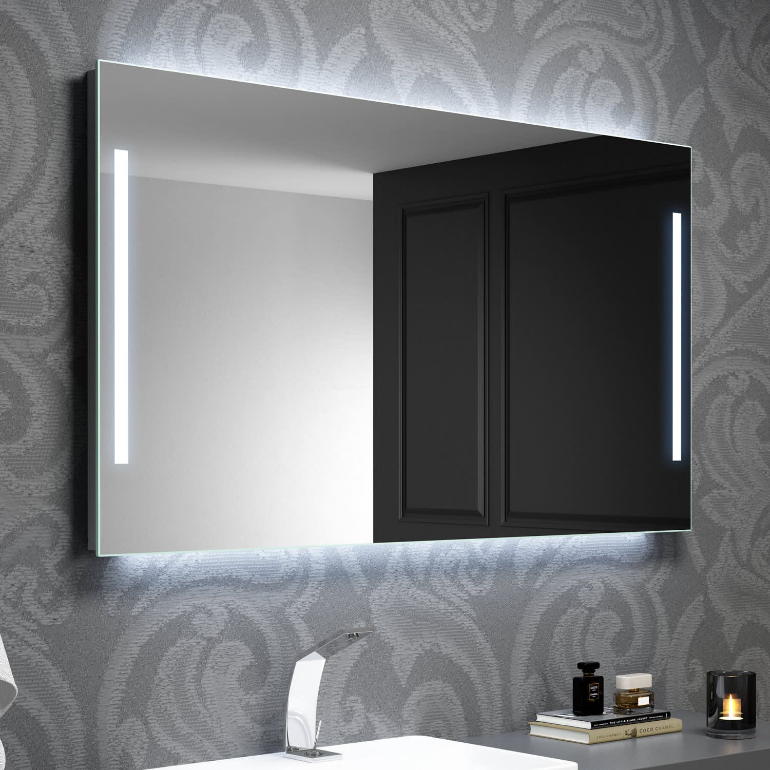 Neben der optik ist natürlich der nutzen eines badspiegels von zentraler bedeutung. Da die lichtspiegel zeitlos designt sind fügen sie sich in jedes badezimmer angenehm ein ohne den rest der einrichtung zu erdrücken. Der umlaufende rahmen in schwarz oder silbereloxiert ist eine attraktion in jedem badezimmer.